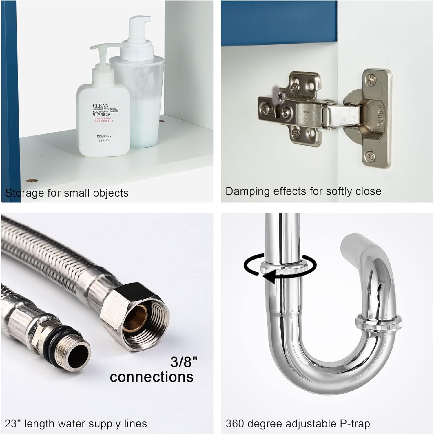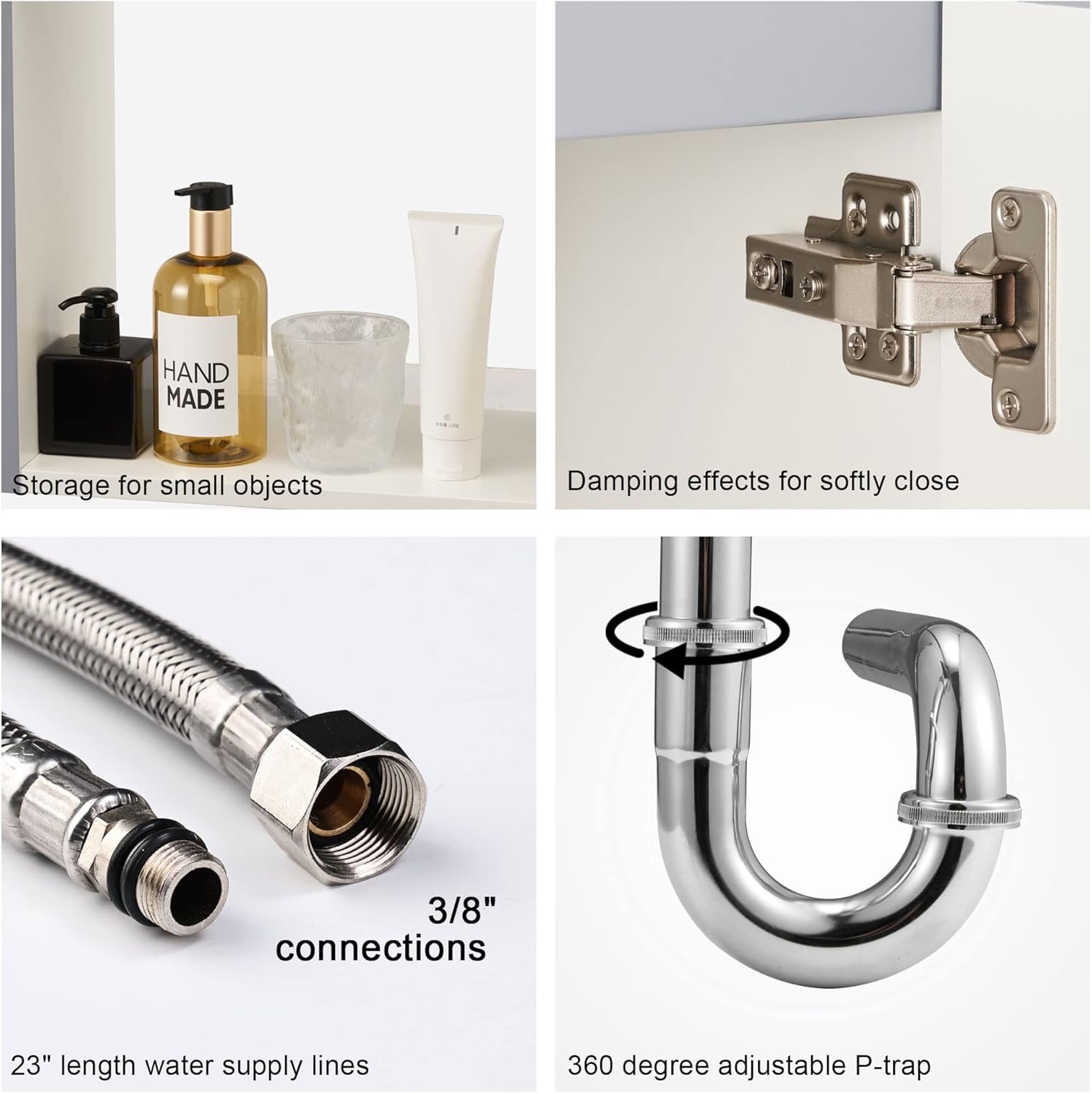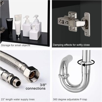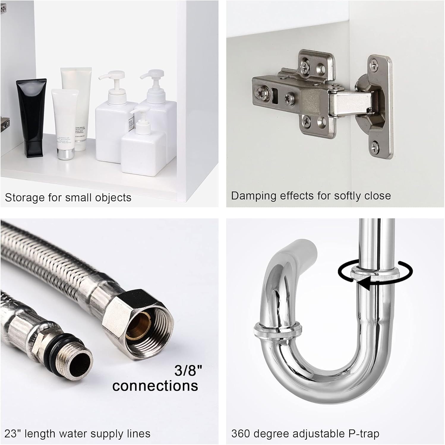 • Fácil de usar: el lavabo se puede instalar a la izquierda o a la derecha según tus necesidades; piezas requeridas y kits de hardware incluidos; efectos de amortiguación para cerrar suavemente; almacenamiento para objetos pequeños; fácil de limpiar.