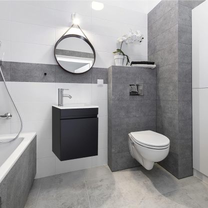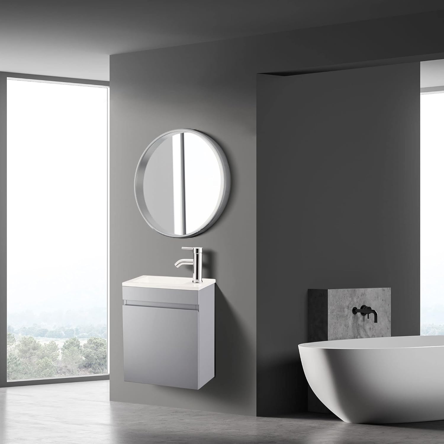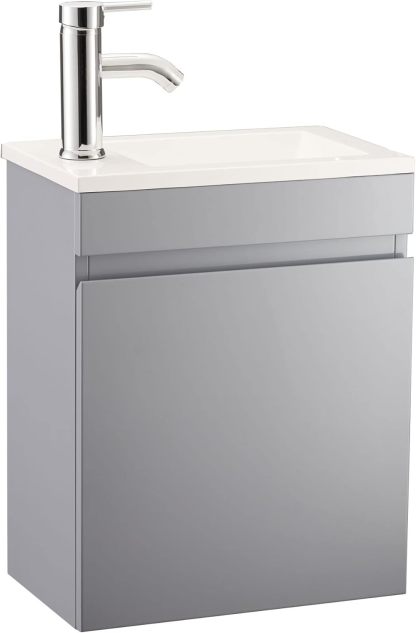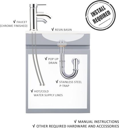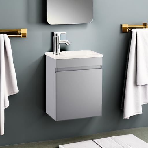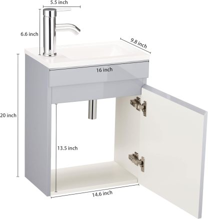 AHB Combo de cambiador de baño con fregadero de 16 pulgadas para espacio pequeño, juego de gabinete de baño montado en la pared con llave chapado en cromo, drenaje en forma de U (gris)