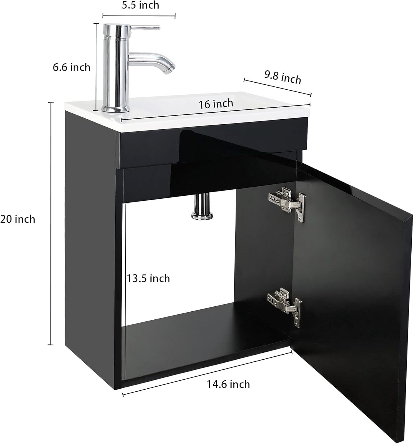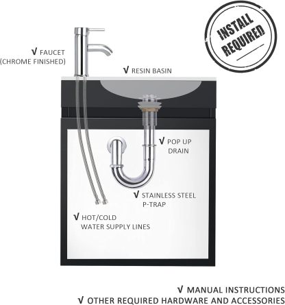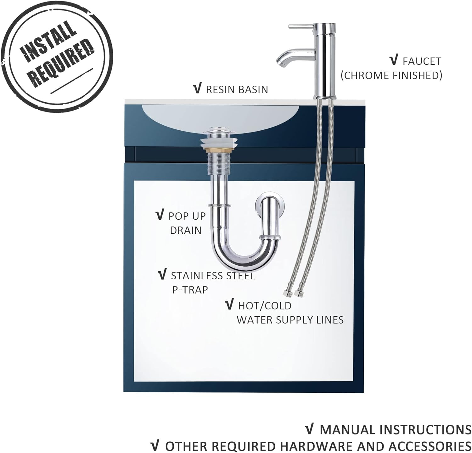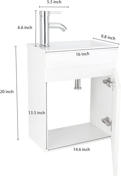 • Especificaciones: tamaño: 16 pulgadas de largo x 20 pulgadas de alto x 9.8 pulgadas de profundidad; incl. 1 cambiador de baño con lavabo, 1 llave en cromo, 1 desagüe emergente, 2 líneas de suministro de agua caliente/fría de 23 pulgadas de longitud (con conexión 3/8), 1 trampa P de drenaje de acero inoxidable, 1 manual de instalación y accesorios de hardware requeridos.
