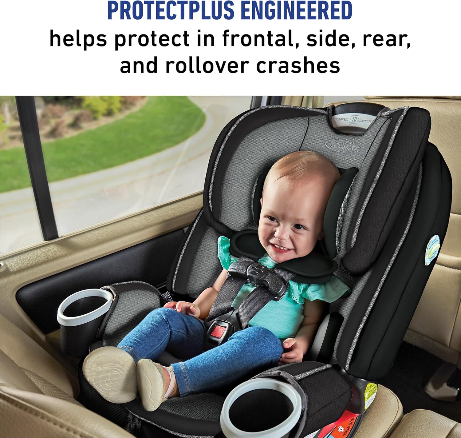 Probado para protección adicional Graco ProtectPlus Engineered es una combinación de las pruebas de choque más rigurosas que ayudan a proteger a su pequeño en choques frontales, laterales, traseros y de volcadura.