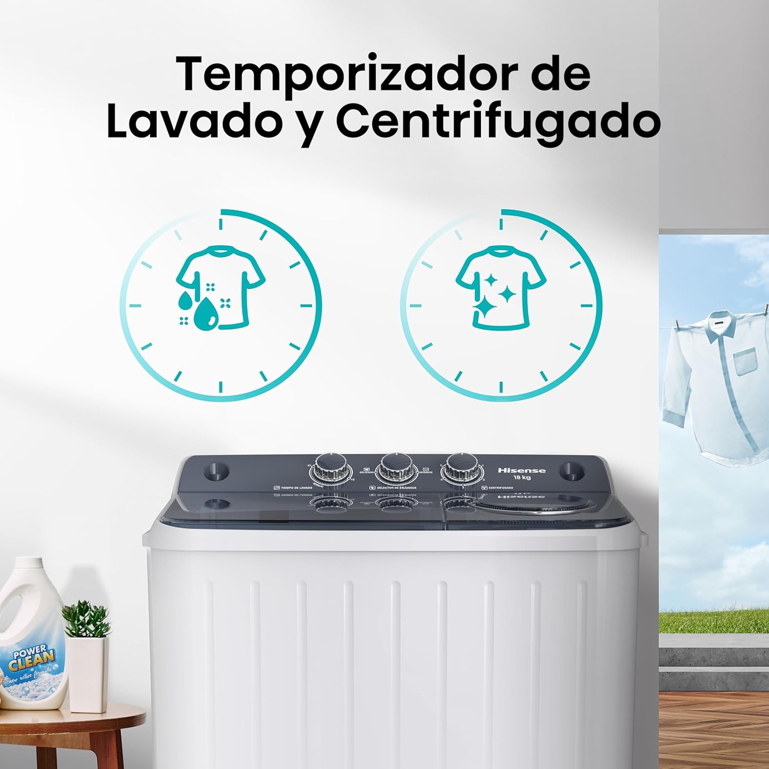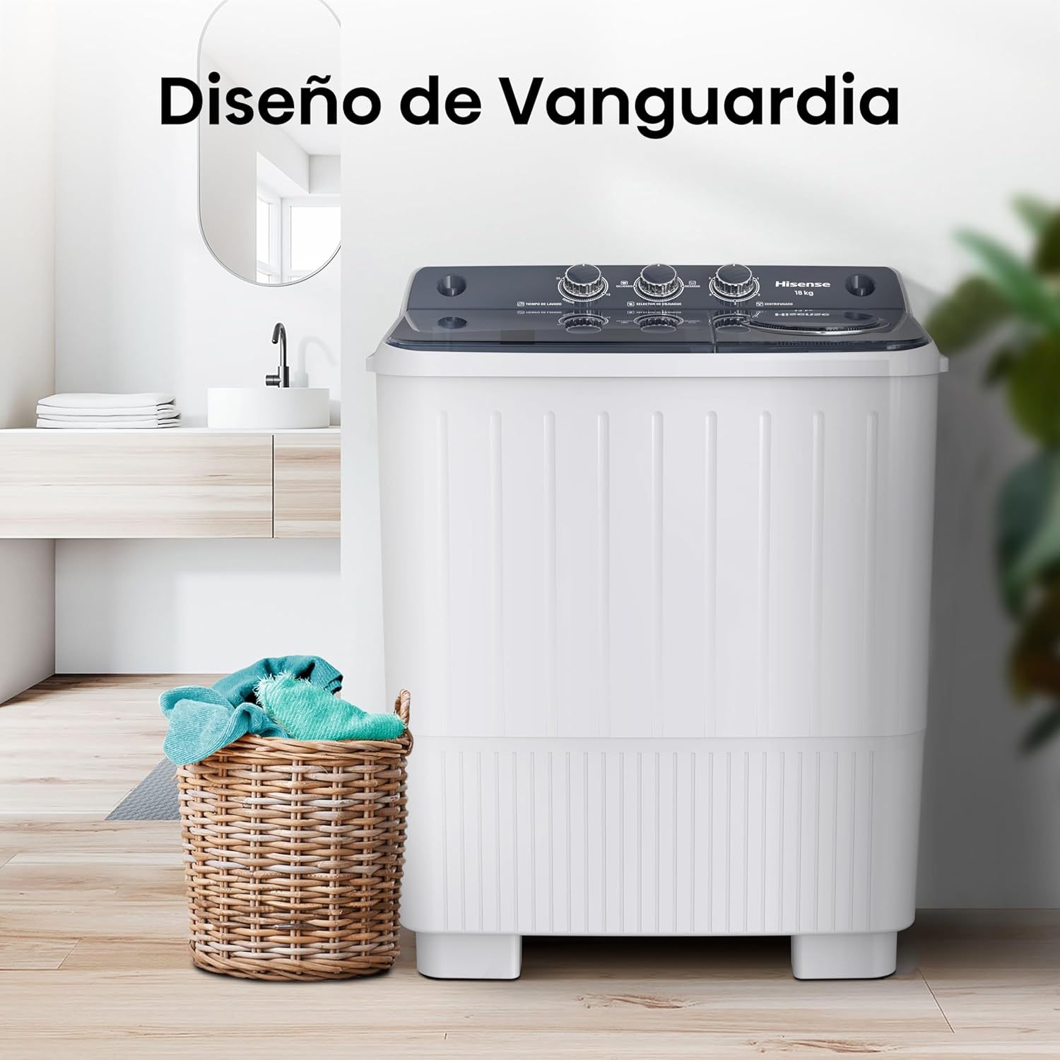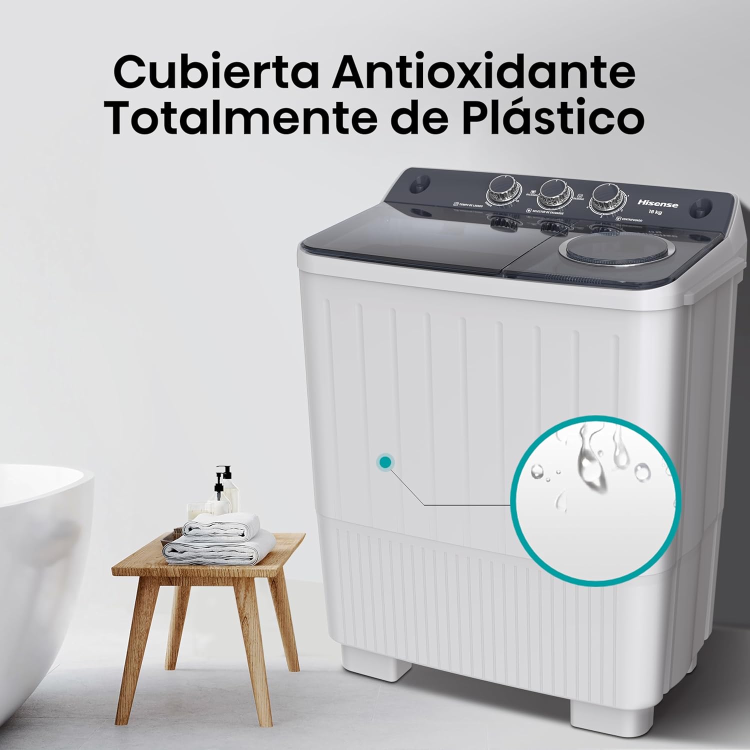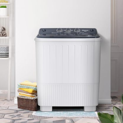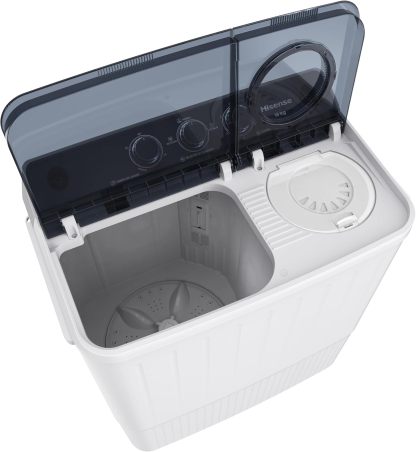 Hisense Lavadora doble tina WSA1804P, Semiautomática, 18 Kg, Temporizador de Lavado y Centrifugado, 89x54x104cm(AnchoxLargoxAlto), Blanco/Gris