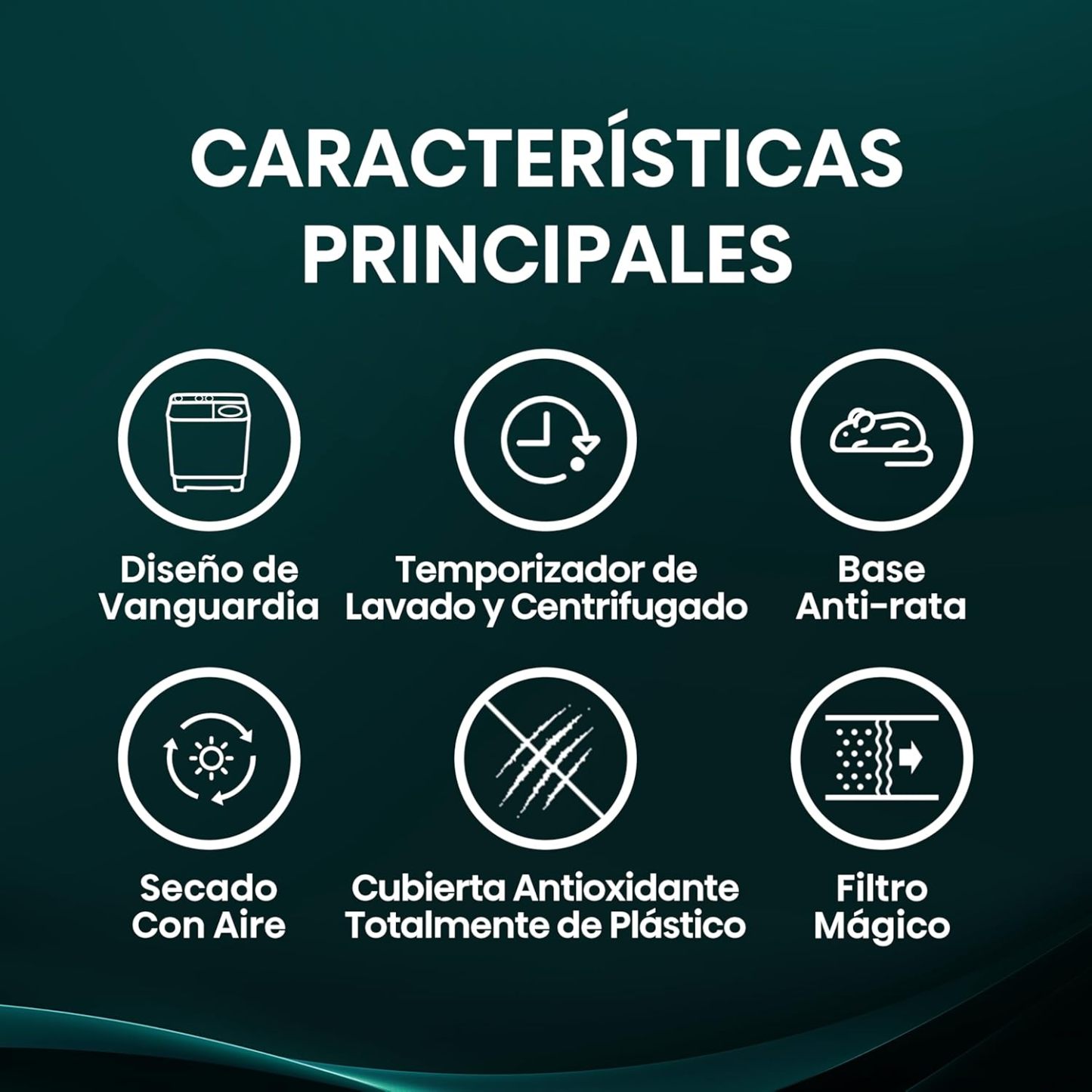 2 tipos de lavado (normal y fuerte) 2 funciones (lavado/ enjuague y desagüe).