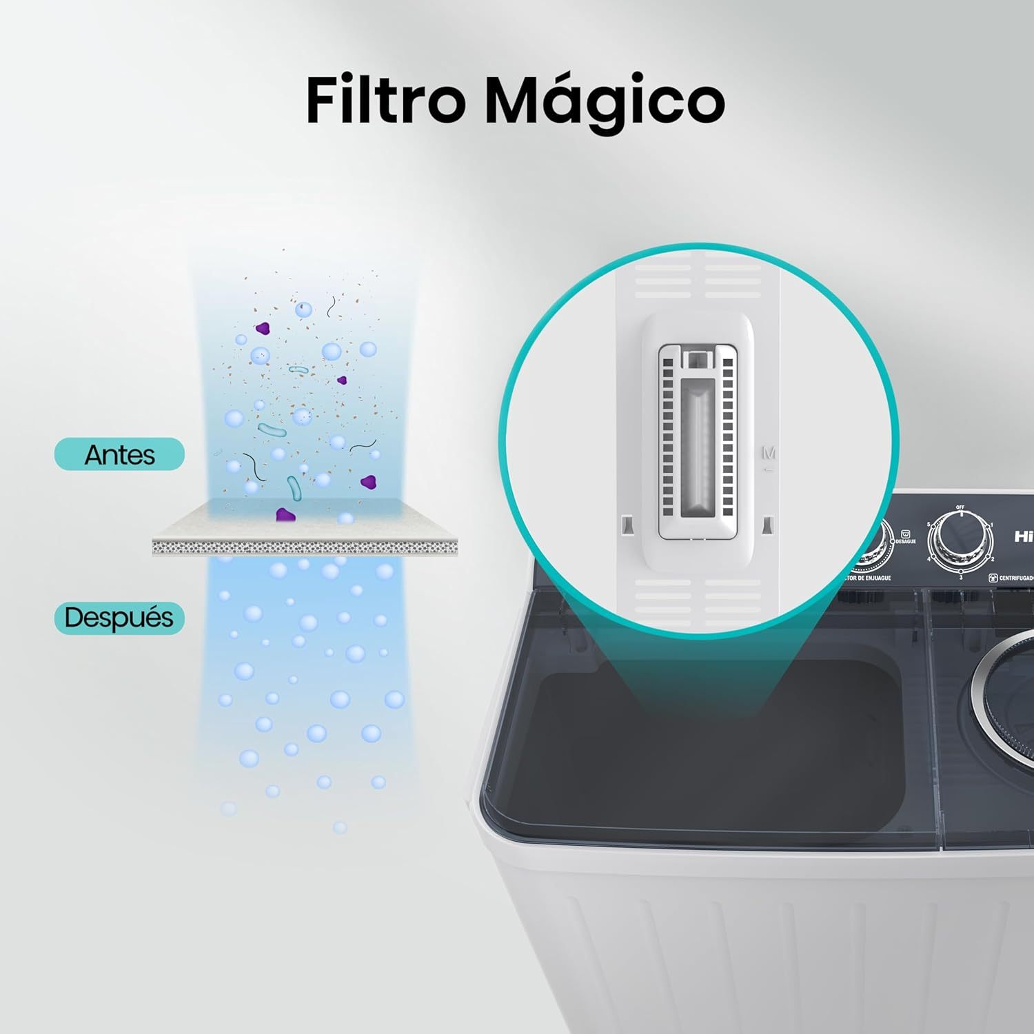 3 niveles de agua y filtro atrapa-pelusa.